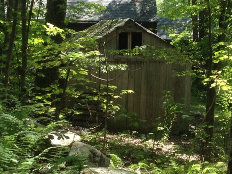 The dogs and I have walked this road many times, occasionally all the way over and back and always in solitude. It has its landmarks: the cross-over for the Gap Mountain trail, lots of old stone walls, a dark and cool Hemlock grove growing in the moisture of converging mountain run-offs. There is also a house. It is an old brown shingled cape, sitting below the arm’s crest at the top of a rough-mowed field. There is a rusted pump out front. It has electricity, which comes in along a summer road that ends there. It has a nice small barn, with glassless window’s eyes looking out through the woods at anyone approaching from the back, the direction we come from.